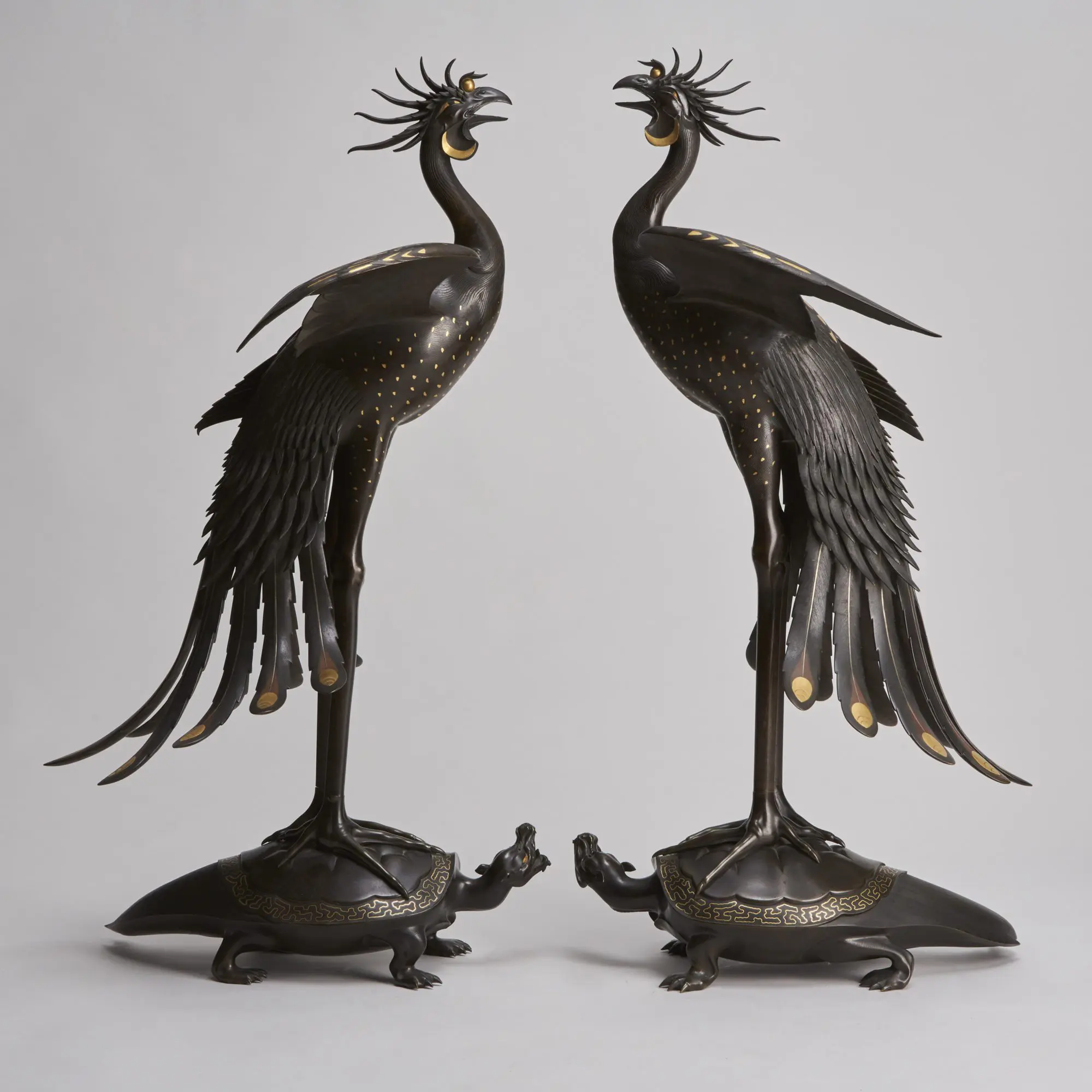 Depictions of the Ho-o have been widespread in Japanese art, literature, architecture and culture for centuries with its motif appearing on Kimono, ceramics, Okimono, furniture Temples and Shrines. It is a representative of Fire, the Sun and the Imperial family and stands for the values of faith, duty and mercy.