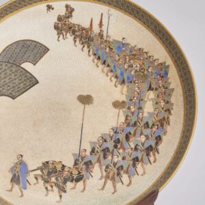 The traditional depiction of the Samurai (as depicted on this dish by Meizan), with male warriors marching into combat