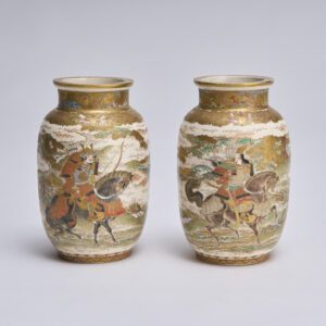 A striking depiction of Kusunoki Masashige on a large Okimono pair by Gyoko